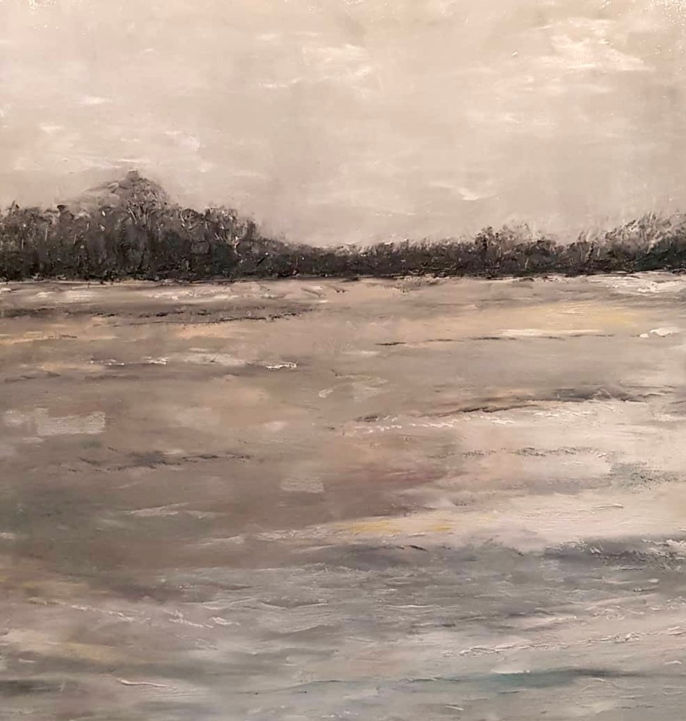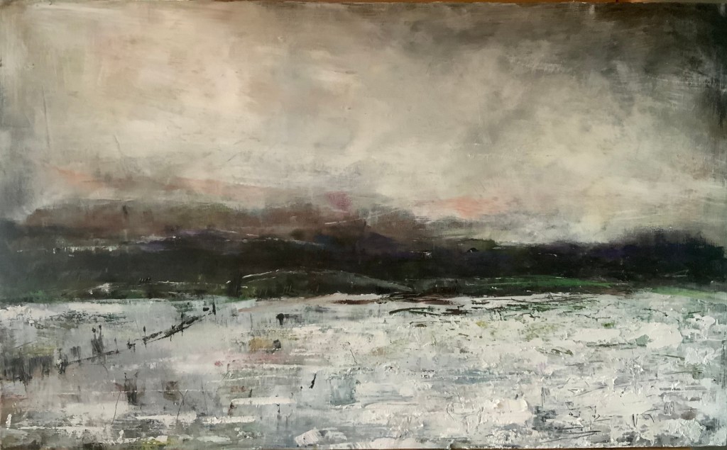 My work is semi-abstract, featuring multiple layers of varying mediums that are scraped back to reveal traces of what has been. The sense of atmosphere and place is developed intuitively. The intention is to create works that bridge the form and formless yet remain heavily routed to place.
