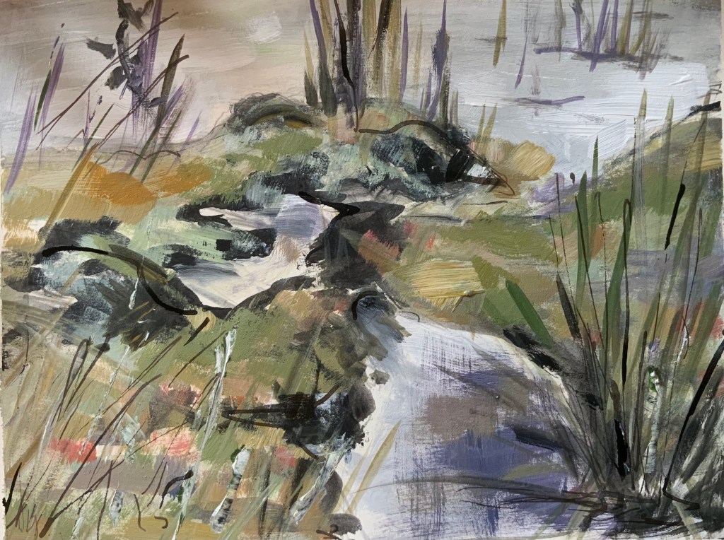 I am an artist who works across a range of mediums including painting, printmaking, textiles, installation and sound. I mainly work intuitively. My research will inform my work. Working across mediums forms part of my research methodology and results in unexpected outcomes.